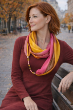 A selyem sokféle alkalomra hordható, könnyed viselet, az öltözék elegáns kiegészítője, ami színeivel az egyéniségedet, hangulatodat tükrözi. A hernyóselyem különlegessége, hogy nyáron hűt, télen fűt, és véd az elektroszmog hatásaitól. A selyem mérete: 40×150 cm. Tisztítása: kézi mosással, folyékony mosószerrel. Vasalás magas hőfokon, a teljes száradás előtt. Az ásványokat folyóvízzel tisztítsuk rövid ideig, ne áztassuk a selyemmel és ne kezeljük mosószerrel. Az ásványgyöngyöket extra erős, a célra kifejlesztett, vízálló zsinórral fűzzűk fel.