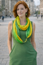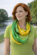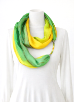 Olivazöld, fűzöld, almazöld, napsárga színű shibori batikolt, kézzel festett hernyóselyem ékszersál, jáde és kalcedon ásványgyöngyökkel. A jáde egyensúlyt teremthet az energiaáramlásban, elűzheti a rossz közérzetet. A speciális hatású ásvány-gyöngyök és a selyem kombinációja egyedi kiegészítőt hoz létre, és harmóniát nyújt viselője számára. A körsál vállunkra terítve elegáns és kényelmes stóla is lehet. A selyem sokféle alkalomra hordható, könnyed viselet, az öltözék elegáns kiegészítője, ami színeivel az egyéniségedet, hangulatodat tükrözi. A hernyóselyem különlegessége, hogy nyáron hűt, télen fűt, és véd az elektroszmog hatásaitól. A selyem mérete: 45×140 cm. Tisztítása: kézi mosással, folyékony mosószerrel. Vasalás magas hőfokon, a teljes száradás előtt. Az ásványokat folyóvízzel tisztítsuk rövid ideig, ne áztassuk a selyemmel és ne kezeljük mosószerrel. Az ásványgyöngyöket extra erős, a célra kifejlesztett, vízálló zsinórral fűzzűk fel.