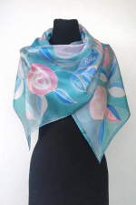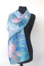 Különleges ballagási ajándék pedagógusok számára a gyermekek neveivel illetve évszámmal megfestett rózsakert mintás hernyóselyem sál türkiz, királykék, szürke, szürkéskék, babarózsa, púder színekben. A nevek a sál szélére, vagy a mintákba kerülhetnek, fekete, arany vagy ezüst kontúrral, a sál színétől függően. Egyedi színekben is kérhető. További mintalehetőségek a “Mintás selyemsálak” címszó alatt találhatók, a gyermekneves ár ez esetben az ottaniaktól eltérő lesz. A gyermekek neveit az info@napselyem.hu emailcímre kérjük.