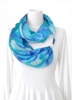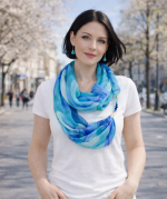Ásvány mintázatra emlékeztető spirálmintás hernyóselyem ékszersál királykék, türkiz, smaragd, menta színekben, különféle ásványgyöngyökkel. A lapis lazuli segítheti a figyelmet, koncentrációt és nyitottabbá tehet az intuiciók számára. A türkiz a kommunikácó köveként segítheti helyes önkifejezésünket és az őszinteséget. A jáde egyensúlyt teremthet az energiaáramlásban, elűzheti a rossz közérzetet, a jáspis pedig védelmező, stresszoldó hatású. Az amazonit pozitív hatással van az idegrendszerre, torokra, pajzsmirigyre, segíthet a gyászban, oldhatja a szomorúságot és megnyugtathatja viselőjét. A speciális hatású ásvány-gyöngyök és a selyem kombinációja egyedi kiegészítőt hoz létre, és harmóniát nyújt viselője számára. A körsál vállunkra terítve elegáns és kényelmes stóla is lehet. A selyem sokféle alkalomra hordható, könnyed viselet, az öltözék elegáns kiegészítője, ami színeivel az egyéniségedet, hangulatodat tükrözi. A hernyóselyem különlegessége, hogy nyáron hűt, télen fűt, és véd az elektroszmog hatásaitól. Mérete: 40×150 cm. Tisztítása: kézi mosással, folyékony mosószerrel. Vasalás magas hőfokon, a teljes száradás előtt. Az ásványokat folyóvízzel tisztítsuk, ne áztassuk a selyemmel együtt, ne kezeljük mosószerrel.