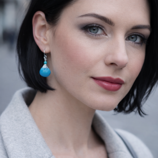 Selyemből és színben harmonizáló ásványgyöngyökből készült fülbevalók.